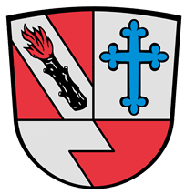 Über durch eine Zickzackstufe von Silber und Rot gespaltenem Schildfuß, gespalten; vorn in Rot ein silberner Schrägbalken, der mit einem rot brennenden schwarzen Ast belegt ist, hinten in Silber ein schwebendes blaues Kleeblattkreuz.
